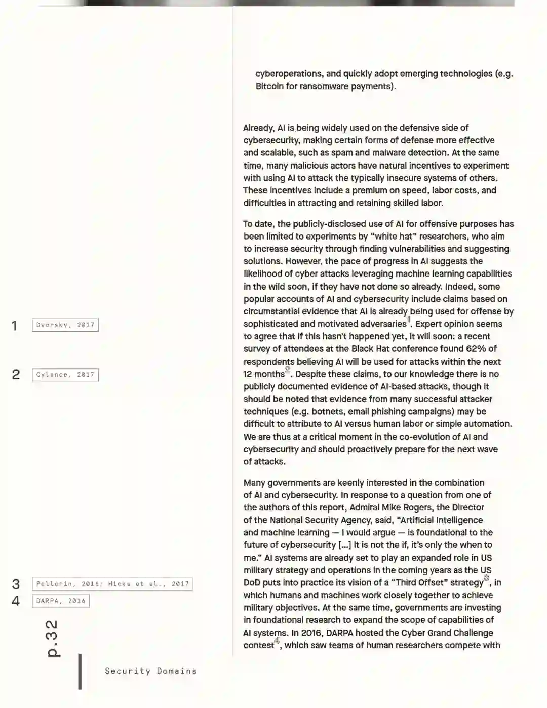 "我们都同意人工智能有很多正面的应用," 剑桥大学的"人类生存研究中心" 学者布伦达格(Miles Brundage)说道,"但是在不当使用人工智能会造成什么后果这个方面,论述显然很少。"