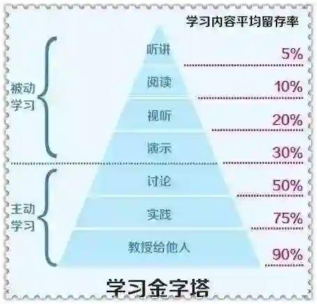 下图是一个很经典的学习金字塔,我们可以看到不同学习动作对内容留存率的效果。