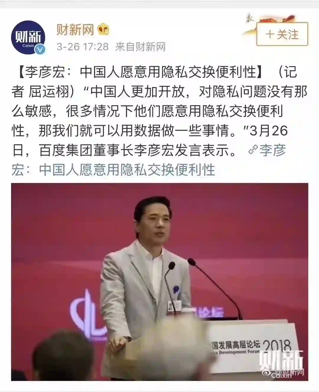 也许,李彦宏来谈互联网隐私问题,是很不合时宜的吧。