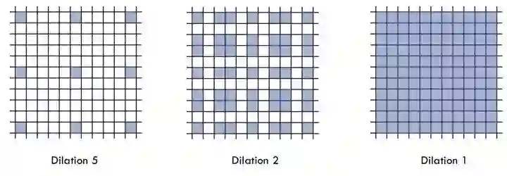 https://www.zhihu.com/question/43609045/answer/132235276),之前的pooling操作使得每个pixel预测都能看到较大感受野信息。因此图像分割FCN中有两个关键,一个是pooling减小图像尺寸增大感受野,另一个是upsampling扩大图像尺寸。在先减小再增大尺寸的过程中,肯定有一些信息损失掉了,那么能不能设计一种新的操作,不通过pooling也能有较大的感受野看到更多的信息呢?答案就是dilated conv。