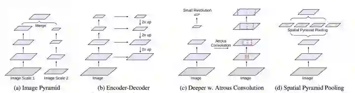 基于港中文和商汤组的 PSPNet 里的 Pooling module (其网络同样获得当年的SOTA结果),ASPP 则在网络 decoder 上对于不同尺度上用不同大小的 dilation rate 来抓去多尺度信息,每个尺度则为一个独立的分支,在网络最后把他合并起来再接一个卷积层输出预测 label。这样的设计则有效避免了在 encoder 上冗余的信息的获取,直接关注与物体之间之内的相关性。