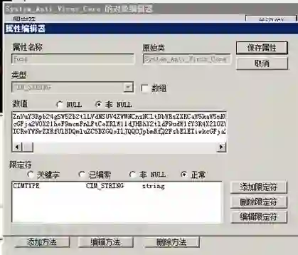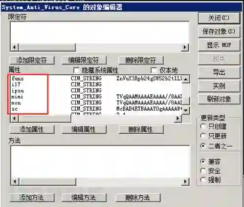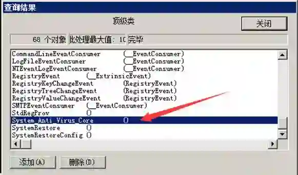 3.已在WMI中将root\default:System_Anti_Virus_Core的funs、i17、ipsu、mimi、mon、sc、ver属性删除;