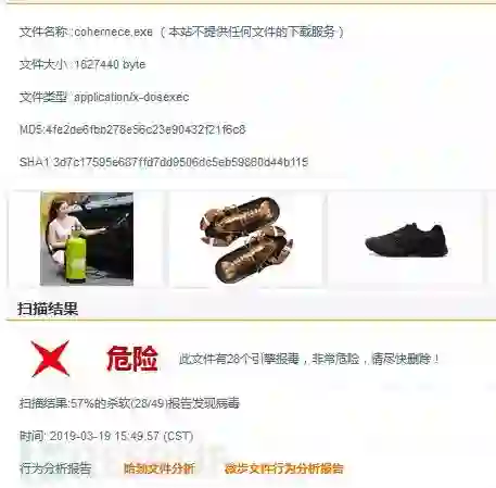 由于PID 3964 get该文件并加载到内存后没有存储行为,且利用浏览器使用相同的请求头部也无法下载该文件,导致无法继续分析(后来发现在命令行中运行然后重定向到文件中即可对其进行分析)。根据该进程判断该文件至少包括修改WmiClass、下载cohernece.exe等恶意程序的功能。