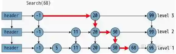 在NSW基础之上,HNSW加入了跳表结构做了进一步优化。最底层是所有数据点,每一个点都有50%概率进入上一层的有序链表。这样可以保证表层是“高速通道”,底层是精细查找。通过层状结构,将边按特征半径进行分层,使每个顶点在所有层中平均度数变为常数,从而将NSW的计算复杂度由多重对数复杂度降到了对数复杂度。