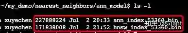 此外,同样的53360条特征向量(768维度),保存为静态索引文件后 ann 索引的大小是227MB,hnsw索引是171MB,从这一点看hnsw也略胜一筹,可以节约部分内存。