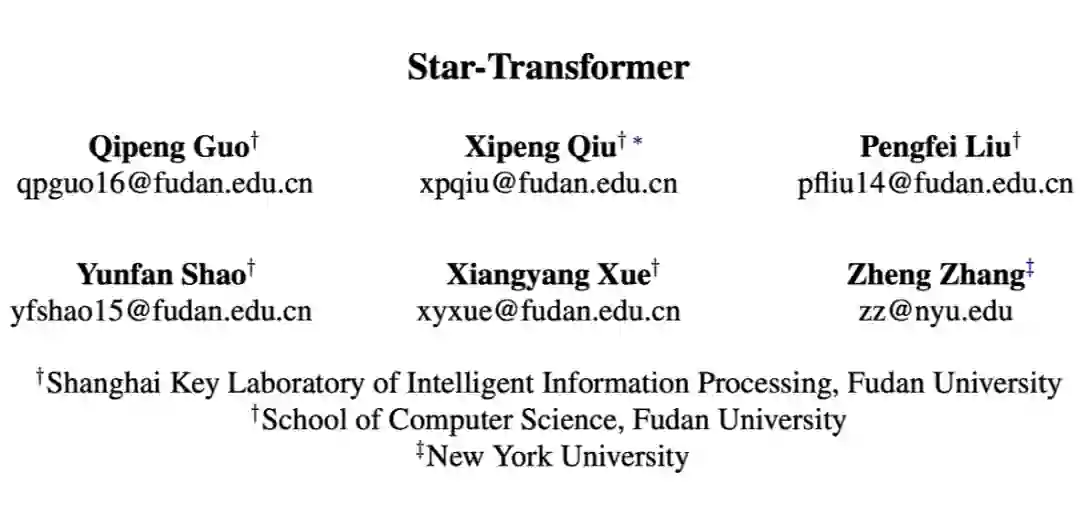 Star-Transformer 用星型拓扑结构代替了全连通结构如上图左边是 Transformer,而右边是 Star-Transformer。在右边的图中,所有序列中直接相邻的词可以直接相互作用,而非直接相邻的元素则通过中心节点实现间接得信息传递,因此,复杂性从二次降低到线性,同时保留捕获局部成分和长期依赖关系的能力。