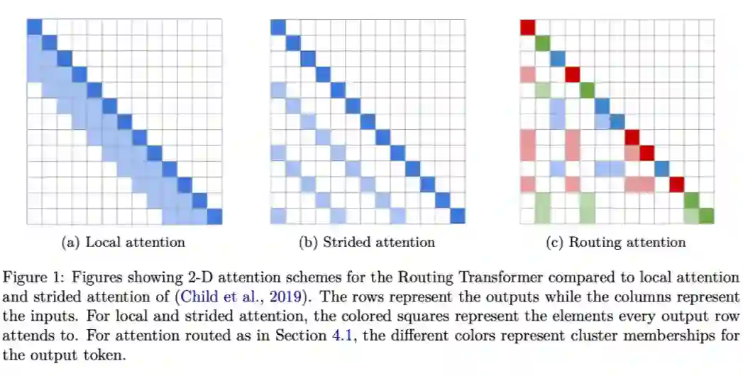 和前两篇文章的目标一样,如何使标准 Transformer 的时间复杂度降低。Routing Transformer 将该问题建模为一个路由问题,目的是让模型学会选择词例的稀疏聚类,所谓的聚类簇是关于每个键和查询的内容的函数,而不仅仅与它们的绝对或相对位置相关。