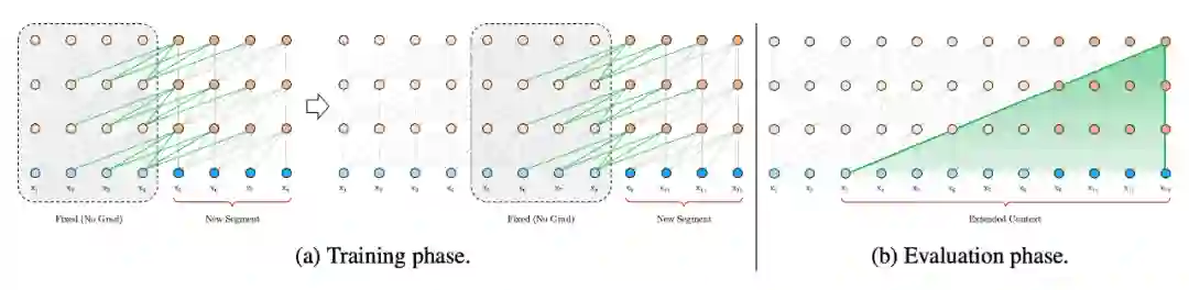虽然 Transformer 可以学习到输入文本的长距离依赖关系和全局特性,但是!需要事先设定输入长度,这导致了其对于长程关系的捕捉有了一定限制。