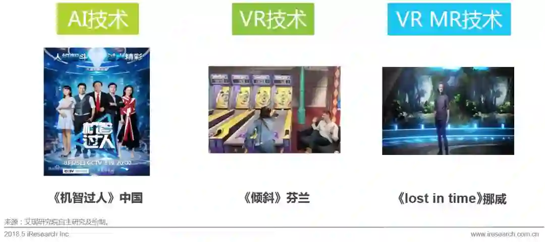 ②AR/VR技术:国外已经有成功运用AR和VR技术的综艺节目,从体验类的VR游戏综艺到时空变换的VR综艺,模式新颖发展空间大。