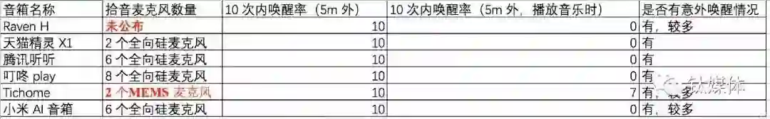 需要靠近音箱才行,但是同样的,这六款设备都无法实现唤醒词的自定义,这可能是出于唤醒成功率的考虑。这些智能音箱同时也会对视频或者音频中的人声唤醒有反应。当然,这些音箱也会偶尔出现误唤醒的状况,比如莫名其妙的响应,其中 Tichome,Raven H 和小米 AI 音箱出现的次数最多。最尴尬的是,钛媒体在使用其他智能音箱播放歌曲的时候,甚至会激活其他智能音箱。