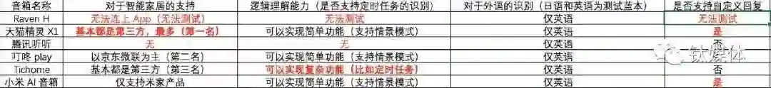 至于逻辑理解能力,钛媒体并没有考察他们关于各个亲戚之间的叫法,而是代替以是否能理解设置定时任务,比如定时打开空调或者关闭插座。这几款音箱中,除了 Raven H 无法参与实验,腾讯听听不支持任何智能家居之外,其他的几乎都支持 Broadlink 旗下的所有智能设备。为什么说几乎呢?因为小米 AI 音箱仅支持自家的智能家居产品。