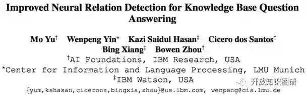 Yu M, Yin W, Hasan K S, etal. Improved Neural Relation Detection for Knowledge Base QuestionAnswering[J]. 2017.