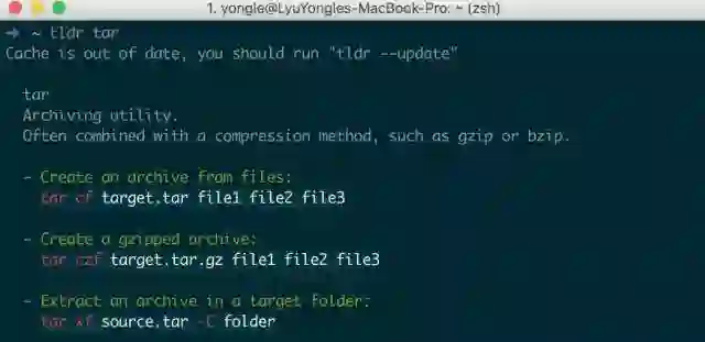 而 tldr : Simplified and community-driven man pages 可以快速 get 到,回忆起命令的常见用法。