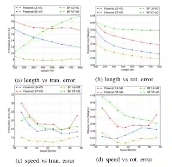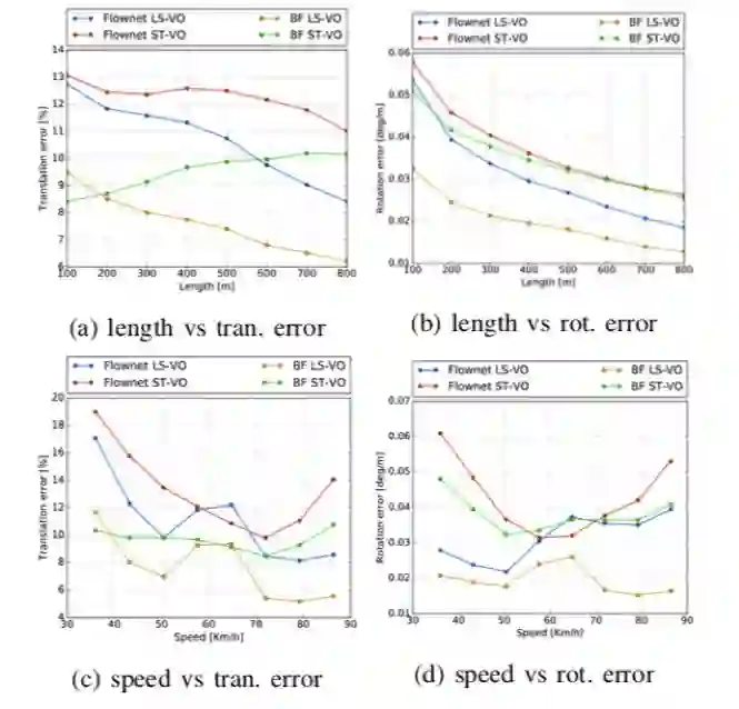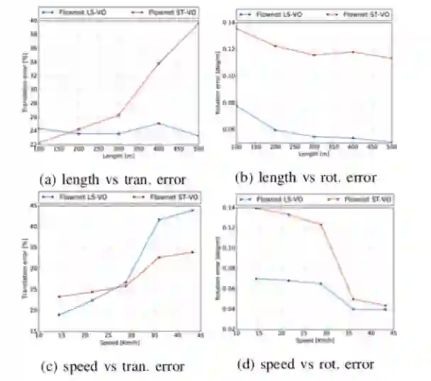 图4 KITTI d2数据集上四种网络的比较。 同样,LS-VO架构优于其他架构,速度约为60Km / h。