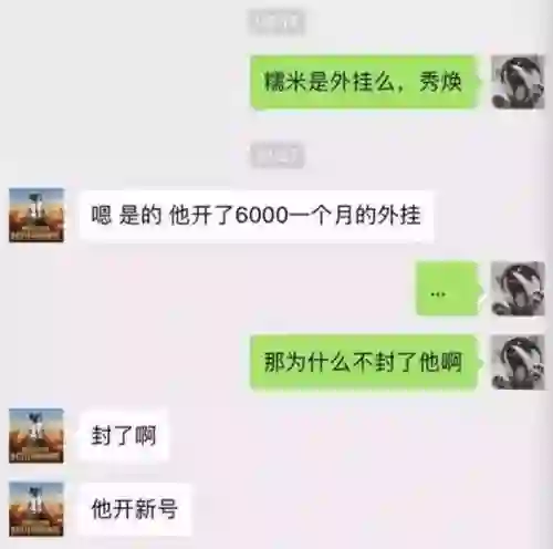 而上个月糯米事件的一张微信截图中,蓝洞官方工作人员曾透露糯米使用的是6000元每月的外挂。为了确保主播使用外挂的“秘密”不被过多人知悉,这些高端外挂的数量都被严格控制,不轻易出售,因此费用更是昂贵。