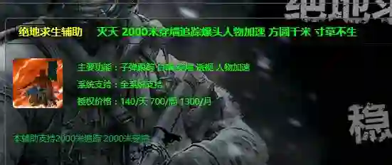 只是想要成为这种级别的“神仙”代价也很高:根据外挂网站的信息,通过外挂可以实现加速移动、透视地形、取消武器后坐力甚至自动瞄准等功能。根据功能多少,外挂的价格也会有所不同,从100元/天到几千元包月不等。其中一款支持子弹跟踪的外挂报价140元每天,包月1300元,外挂的宣传语是“方圆千米,寸草不生”。