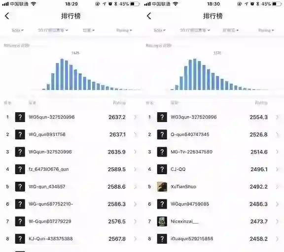 美服和东南亚服单排排行榜,榜首ID“外挂群-xxxxx”(数据来源小黑盒)