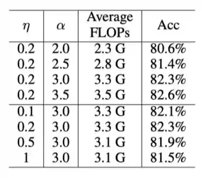 其中, 是实际的FLOPs, 是样本的期望, 是目标FLOPs。通过这个正则化, 如果平均FLOPs值太大,将导致惩罚,从而使得分辨率预测器预测性能充分(预测 正确)和成本有效(分辨率低)的分辨率。