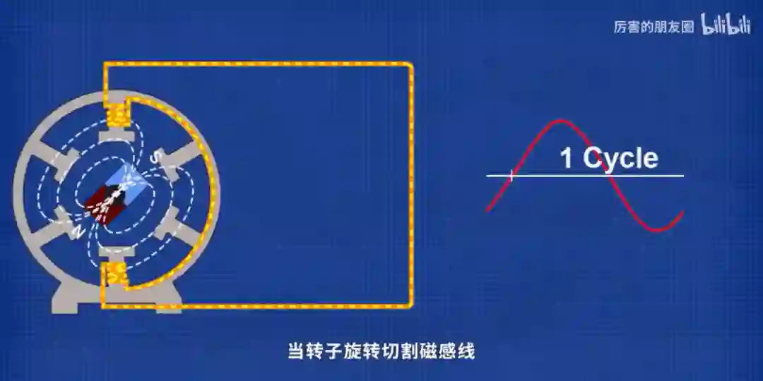 抱歉,交流电之父特斯拉的粉笔头就飞过来了,220V 的电都来自于发电机,当转子旋转切割磁感线,在边缘时电压最小,经过中心时电压最大,离开时又变小,所以电压本质上是一个高低起伏的正弦曲线,而曲线的周期就是发电机的转速——每秒钟 50 次,所以我们插座中的电是 220V/50Hz 的交流电。