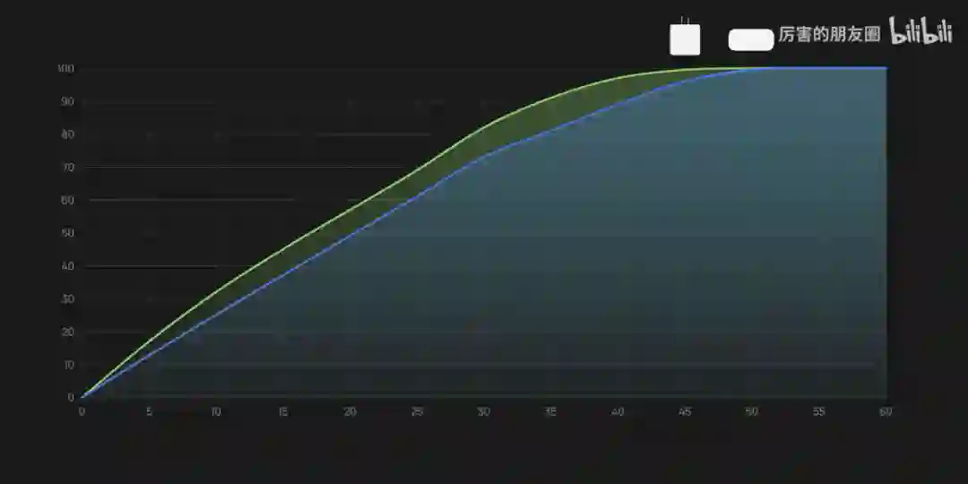 看完原理也来看看疗效,我们拿 65W 的 VOOC 充电器来对比一下充电速度,最后让我们在充电曲线上升中结束这次科普。