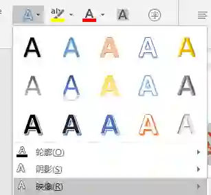 输入要制作倒影的文字,然后点击【开始】-【字体】-【文字效果和版式】按钮,在弹出的菜单中选择“映像”命令,在子菜单中选择需要的倒影样式就完成了。