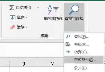 如图,表格中有3列是隐藏的,如果直接复制粘贴的话,隐藏的列会全部粘贴过来,选中数据,“开始”-“编辑”,选中“查找和选择”下拉列表中的“定位条件”;