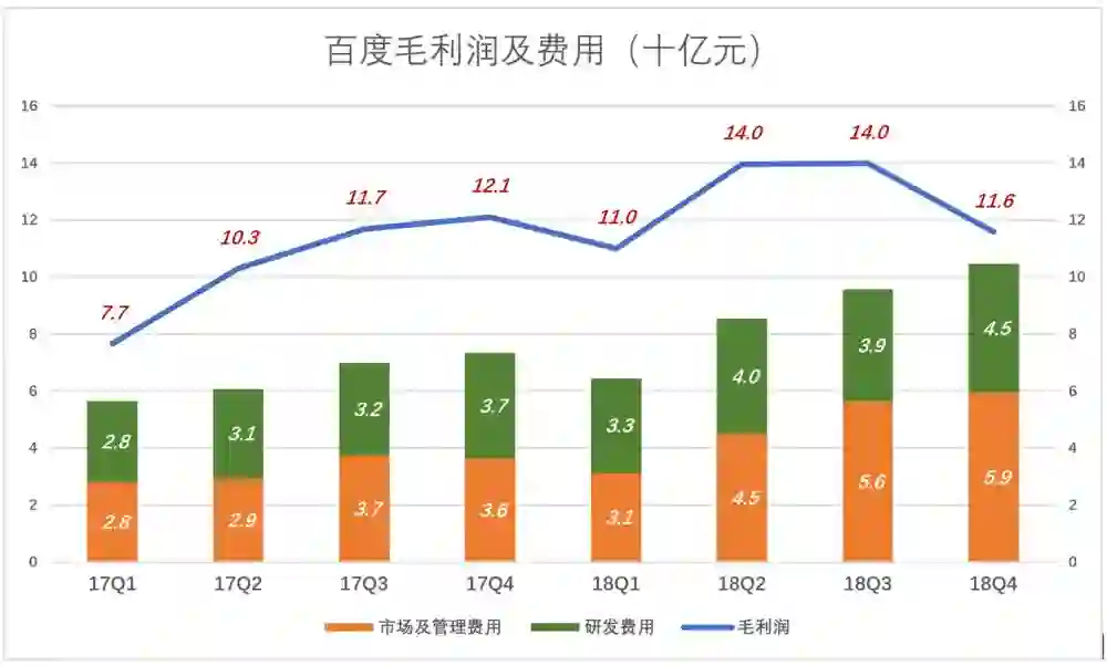 从2012年Q1到2018年Q4,百度研发投入累计达634亿。其中2018年Q4研发费用45.3亿,占本季营收的16.7%。四季度共有65个工作日,百度在每个工作日的研发投入达6969万。