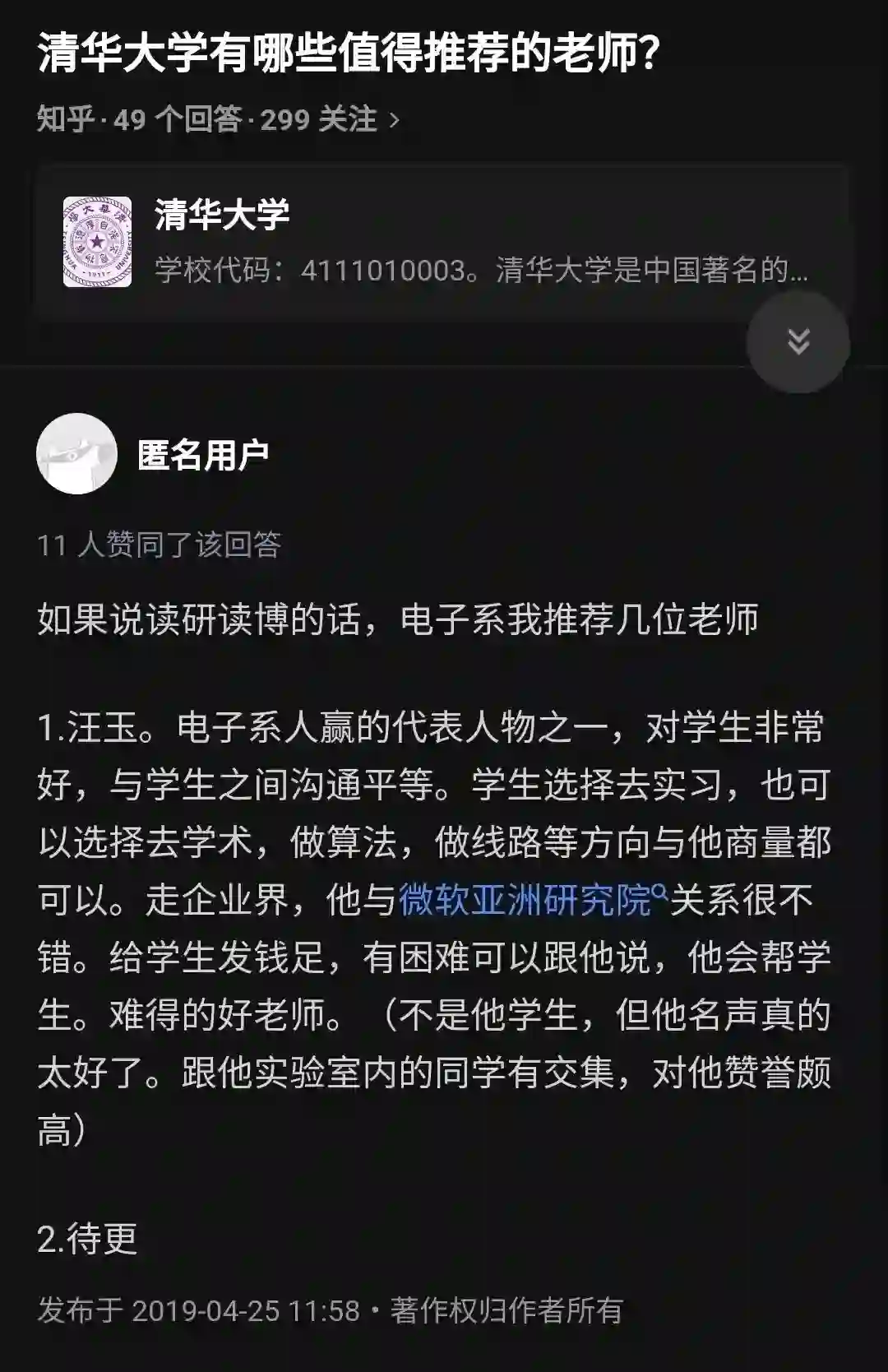 在得知汪玉入选的消息后,汪玉的导师、提名者,加州大学圣芭芭拉分校电机与计算机工程系正教授谢源祝贺道,「作为我和杨华中老师共同指导的 2007 年毕业的博士生,他是国内青年学者的佼佼者,在产学研结合做出杰出贡献!为他感到骄傲!期待他作为年轻的系主任带领清华电子系更上一层楼!」