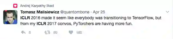 Magic Leap 首席工程师 Tomasz Malisiewicz 在推特上表示,去年的ICLR似乎每个人都在向TensorFlow靠拢,但是,从他参加今年的大会的体验来看,PyTorch正在变得越来越有趣。