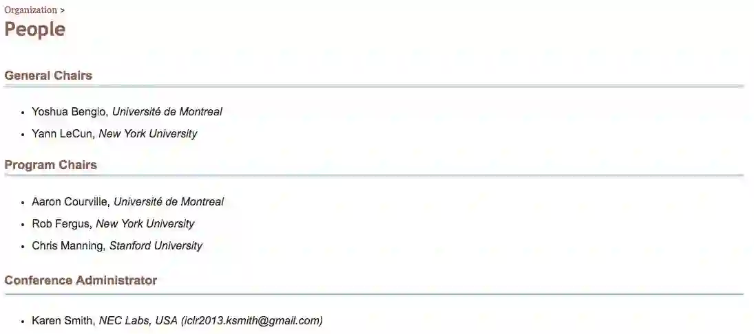 首届 ICLR 2013年在美国亚利桑那州的斯科茨代尔市举办,发起人是深度学习的领军人物Yann LeCun 和 Yoshua Bengio。