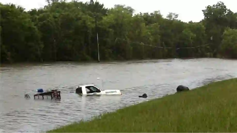 厄尔尼诺还会引发气候异常,比如频繁的大洪水、风暴,这个图片就是在厄尔尼诺影响下突然成了一片“水乡泽国”的美国南部地区。