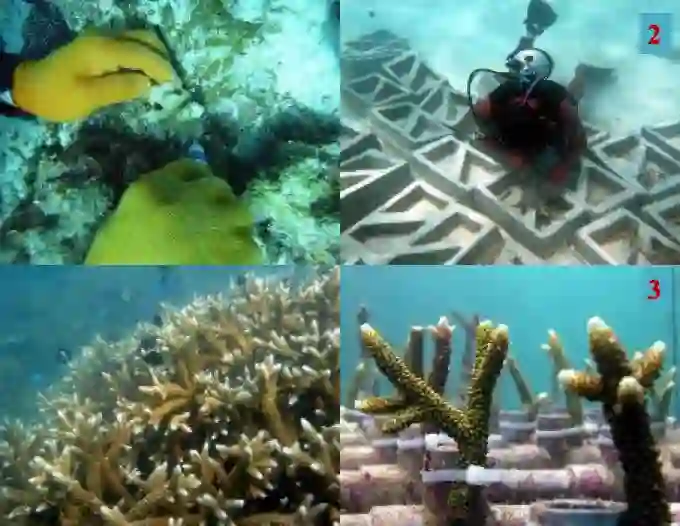 除了一些主动的珊瑚礁生态修复工作,我们还开发人工礁的培育技术。我们必须关注和珊瑚礁有关的框架生物的人工培植。增加框架生物的多样性和数量,珊瑚礁的恢复才能得到保障。
