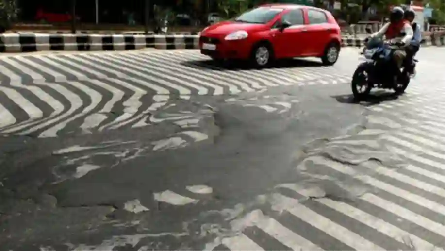 全球变暖最知名的一个现象叫厄尔尼诺。上图是印度首都新德里的一条柏油马路,在气温异常升高的影响下,道路融化,斑马线也变得扭曲模糊。