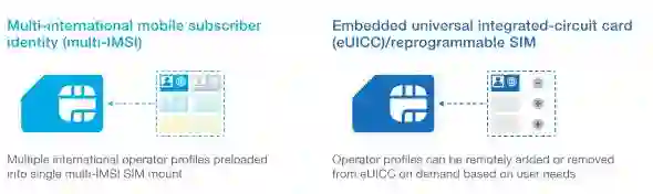 嵌入式通用集成电路卡(eUICC)是一种新兴的SIM卡技术,最终可能代表比Muti-IMSI更好的解决方案,用于物联网中的移动交换。每个eUICC都托管多个MNO的配置文件,用户可以按需远程添加或删除这些配置文件,这可能使用户比Muti-ISMI技术更能控制漫游成本和质量。