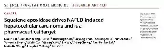 Dabin Liu, Chi Chun Wong, Li Fu, Huarong Chen, Liuyang Zhao.Squalene epoxidase drives NAFLD-inducedhepatocellular carcinoma and is apharmaceutical target