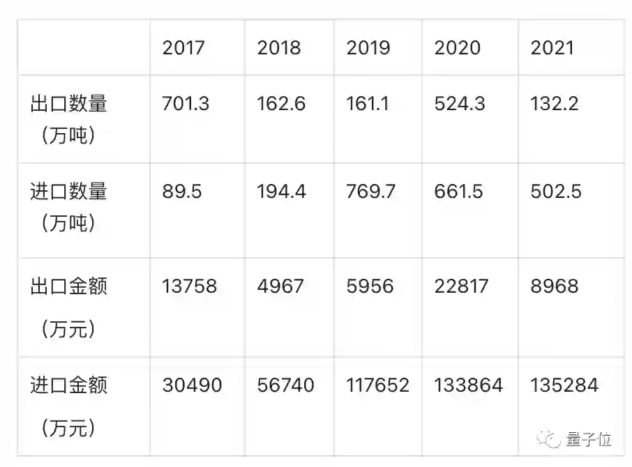 但之后随着建筑等应用领域的需求不断扩大,加上对环境的保护,在四年之后(2017年),我国进口数量首次超过了出口数量。