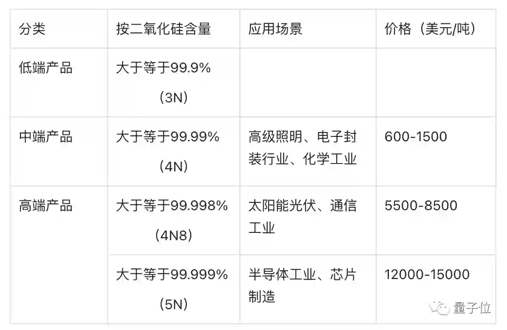 根据二氧化硅含量的不同,高纯石英砂还被分成了低中高端,其应用的场景也分别有所对应。