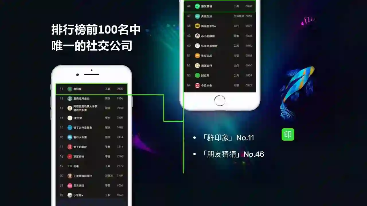 在3万个小程序里排在前100名——而且我们是唯一一家社交进到100名以内,和两个小程序上榜(一个是第11名,一个是第46名)的公司。