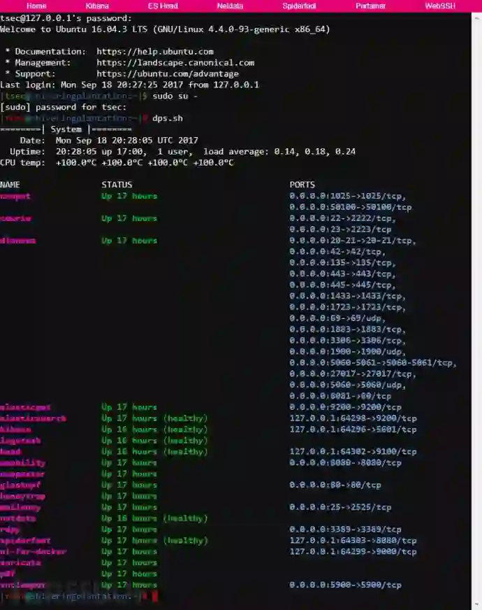 T-Pot17.10基于Ubuntu Server 16.04.x LTS的一个蜜罐平台。 蜜罐程序以及正在使用的其他支持组件使用docker进行了容器化。 我们可以在同一台设备上运行多个蜜罐进程,每个蜜罐占用的空间较小并限制在蜜罐自己的环境中运行。