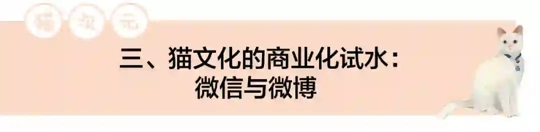微信是云养猫另一个商业化程度较高的平台,主要体现在公众号、表情包和小程序等三个领域。