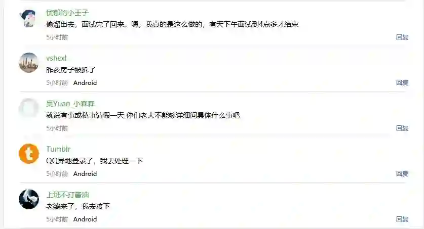 @ZainZhou :你们跳槽面试都是怎么请假的啊,用的啥理由啊?十分好奇,感觉我已经编不出理由了……