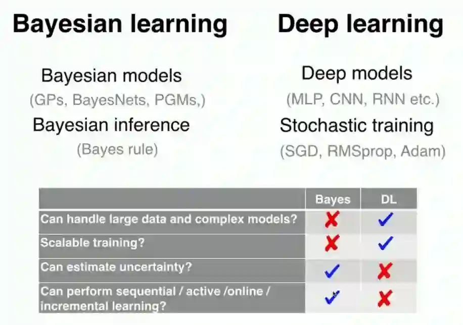 正如Emtiyaz Khan在他的《深度学习与贝叶斯原则》演讲中所强调的那样,贝叶斯学习和深度学习是非常不同的。根据Khan的说法,深度学习使用“试错”的方法——让我们看看实验会把我们带向何方——而贝叶斯原则迫使你事先思考一个假设(先验)。