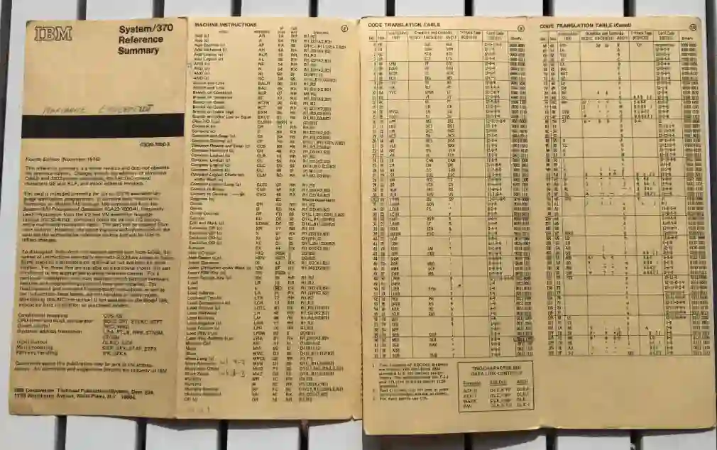 1976 年的 IBM System/370 参考资料。我在右边写了ÅÄÖ(5B、7B 和 7C),因为瑞典字母不包含在 EBCDIC 中。那时的培训怎么样?