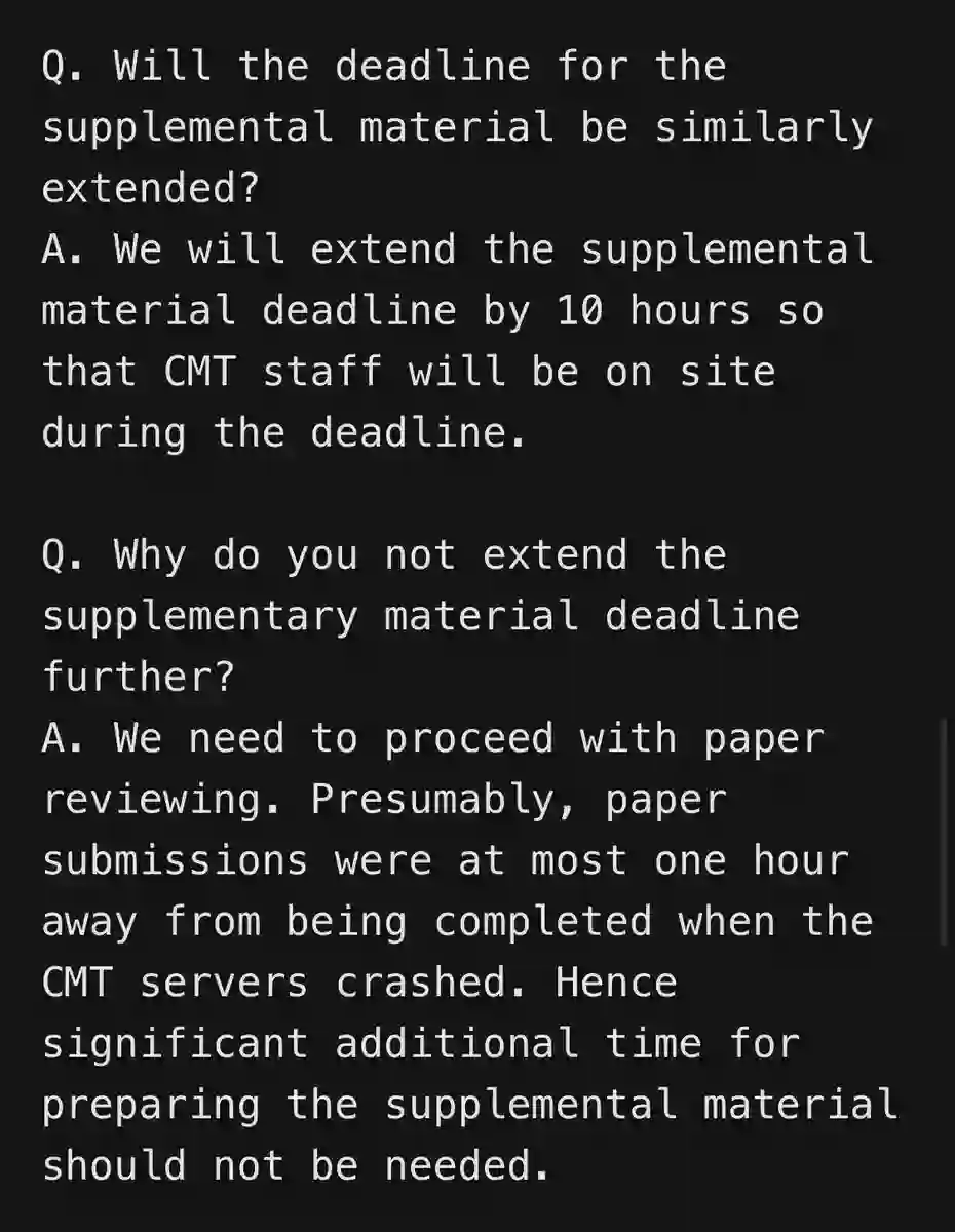 然而没想到的是,CVPR官方论文的提交网站的运气可不怎么好。