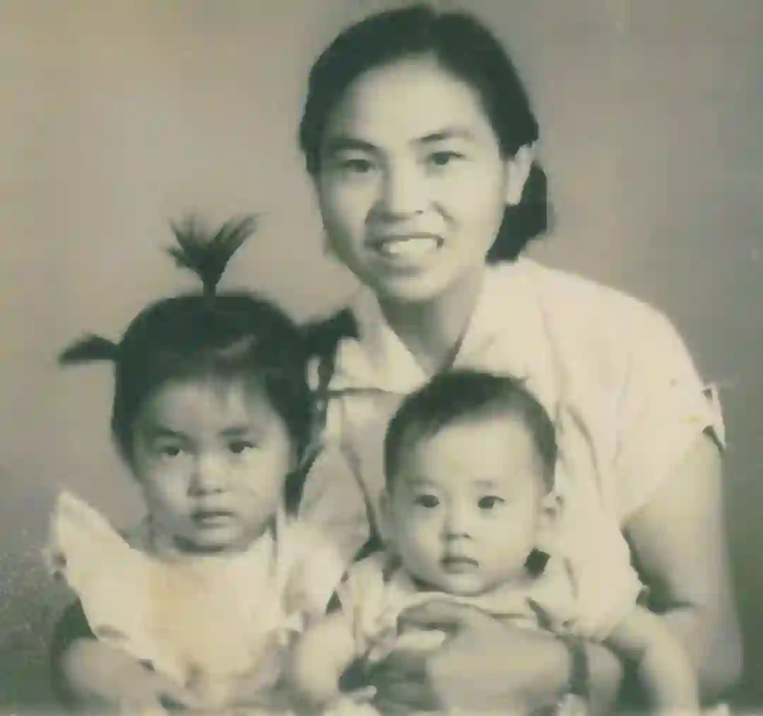 ▲1962年张淑誉与郝炘、郝灴的合影——郝柏林在莫斯科大学研究生宿舍每天面对这张照片工作