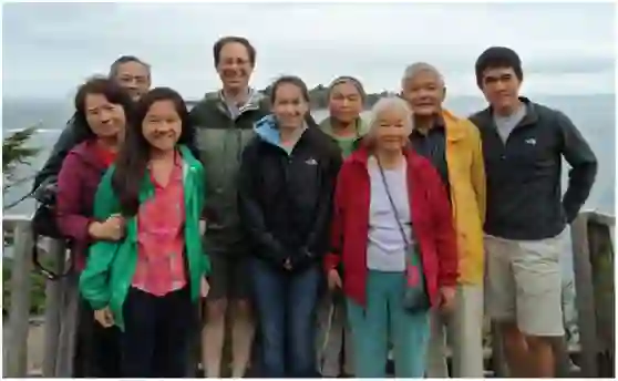 2013年8月郝柏林、张淑誉与儿孙辈共九人摄于美国西北角奥林匹亚半岛