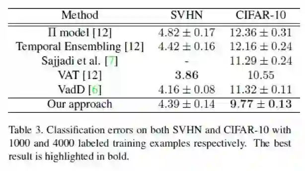 上表:在 SVHN, CIFAR-10 和 CIFAR-100 上的半监督学习效果。
