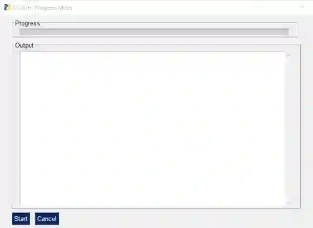 import PySimpleGUI as sgimporttimemylist = [1,2,3,4,5,6,7,8]progressbar = [ [sg.ProgressBar(len(mylist), orientation='h', size=(51, 10), key='progressbar')]]outputwin = [ [sg.Output(size=(78,20))]]layout = [ [sg.Frame('Progress',layout= progressbar)], [sg.Frame('Output', layout = outputwin)], [sg.Submit('Start'),sg.Cancel()]]window = sg.Window('Custom Progress Meter', layout)progress_bar = window['progressbar'] while True:event, values = window.read(timeout=10)if event == 'Cancel' or event is None:breakelif event == 'Start':for i,item in enumerate(mylist):print(item)time.sleep(1)progress_bar.UpdateBar(i + 1)window.close()