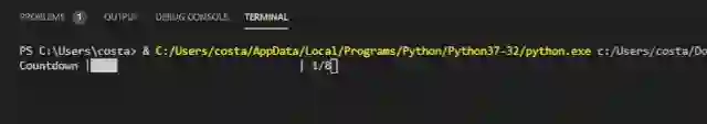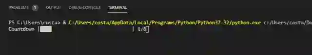 import timefrom progress.barimport IncrementalBarmylist = [1,2,3,4,5,6,7,8]bar = IncrementalBar('Countdown', max = len(mylist))for item in mylist:bar.next()time.sleep(1)bar.finish()