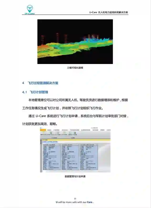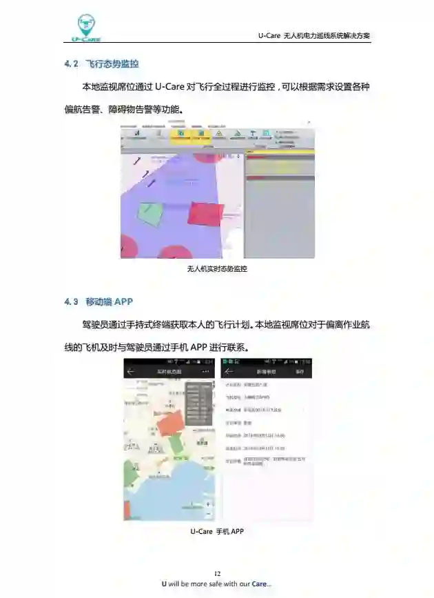 1.在飞行计划申请方面,公司使用U-Care系统可实现与空域管理部门审核部门对接,使计划申报和审批更加流畅。